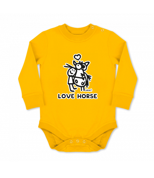 We make sustainable UAX clothing! - hand sewn in the Czech Republic uaxMen uaxSki collectionBaby bodyBABY BODY LONGdesign 1219 - LOVE HORSEGOLDEN CREAM