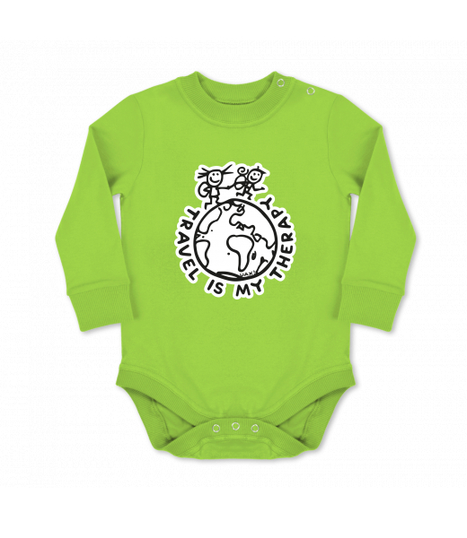 UAX baby body Ski collection for man with design 1240 TRAVEL IS MY THERAPY in color PARROT GREEN