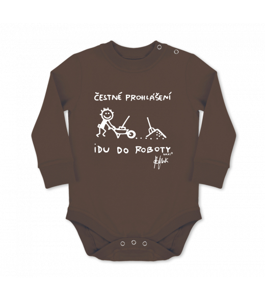 UAX baby body Ski collection for man with design 1303 ČESTNÉ PROHLÁŠENÍ IDU DO ROBOTY in color CHESTNUT