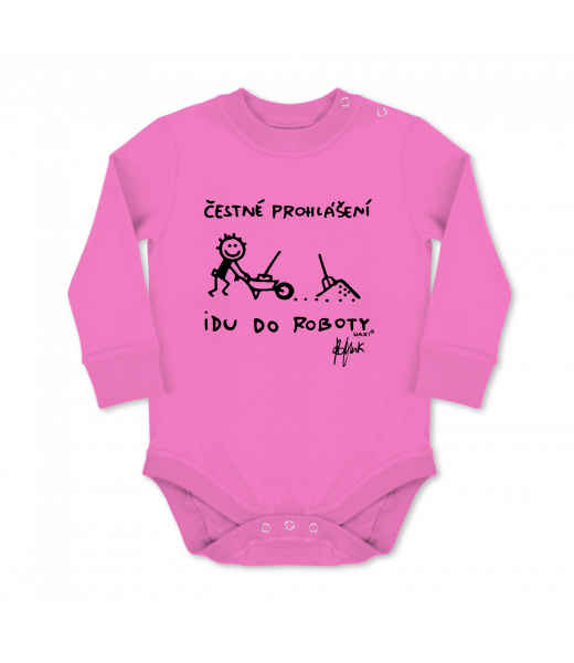 UAX baby body Ski collection for man with design 1303 ČESTNÉ PROHLÁŠENÍ IDU DO ROBOTY in color CLASSIC PINK