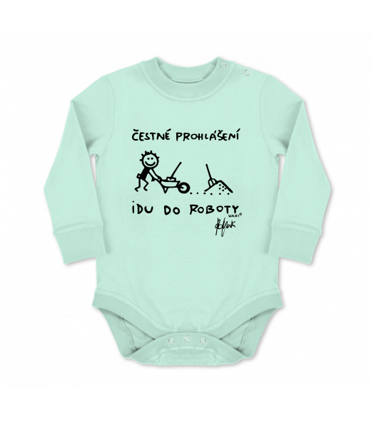 UAX baby body Ski collection for man with design 1303 ČESTNÉ PROHLÁŠENÍ IDU DO ROBOTY in color MINT