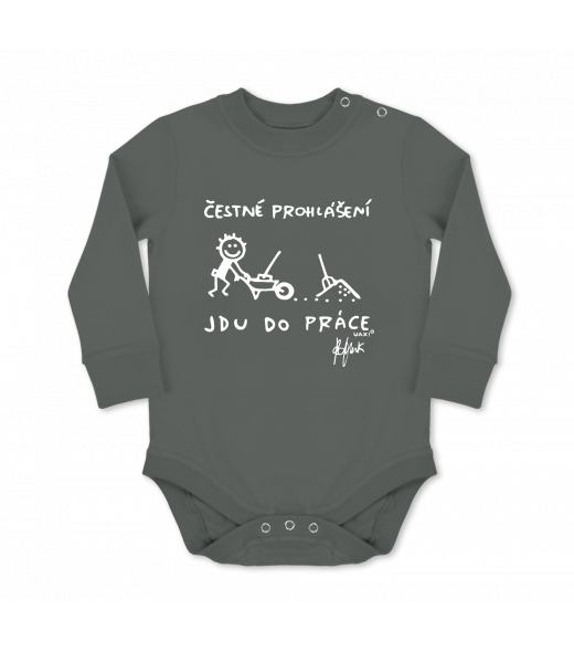 UAX baby body Ski collection for man with design 1304 ČESTNÉ PROHLÁŠENÍ JDU DO PRÁCE in color DARK GRAY