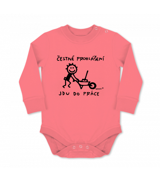 UAX baby body Ski collection for man with design 1305 ČESTNÉ PROHLÁŠENÍ JDU DO PRÁCE 2 in color LOSOSOVA