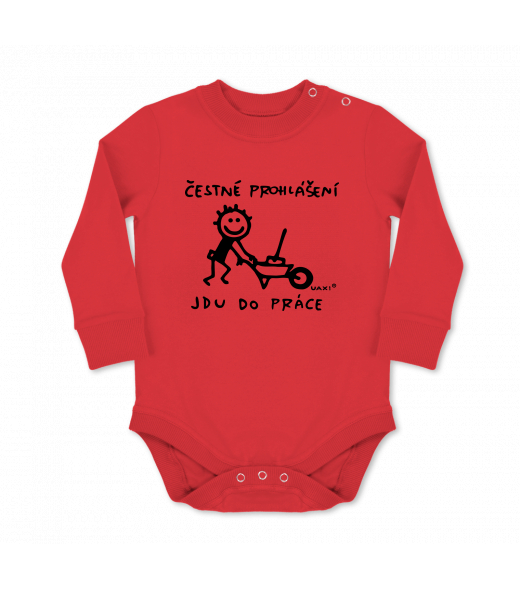 UAX baby body Ski collection for man with design 1305 ČESTNÉ PROHLÁŠENÍ JDU DO PRÁCE 2 in color RED