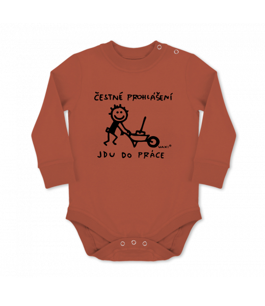 UAX baby body Ski collection for man with design 1305 ČESTNÉ PROHLÁŠENÍ JDU DO PRÁCE 2 in color TERRA