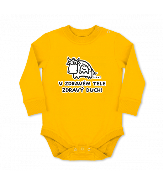 UAX baby body Ski collection for man with design 1309 V ZDRAVÉM TELE ZDRAVÝ DUCH in color GOLDEN CREAM
