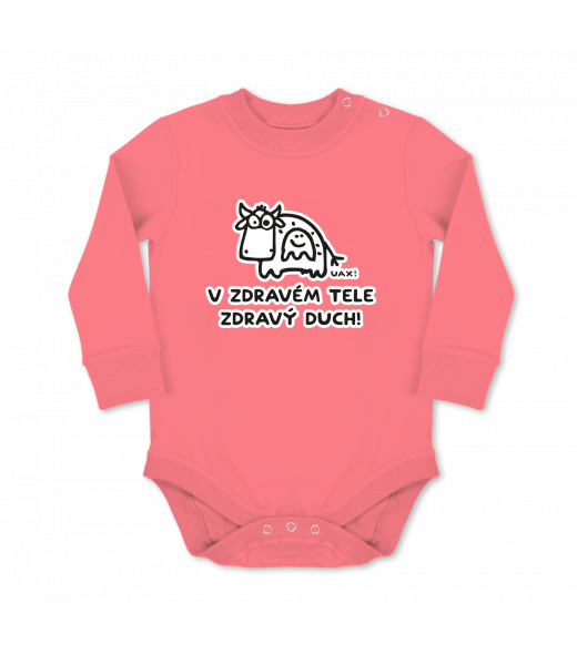 UAX baby body Ski collection for man with design 1309 V ZDRAVÉM TELE ZDRAVÝ DUCH in color LOSOSOVA