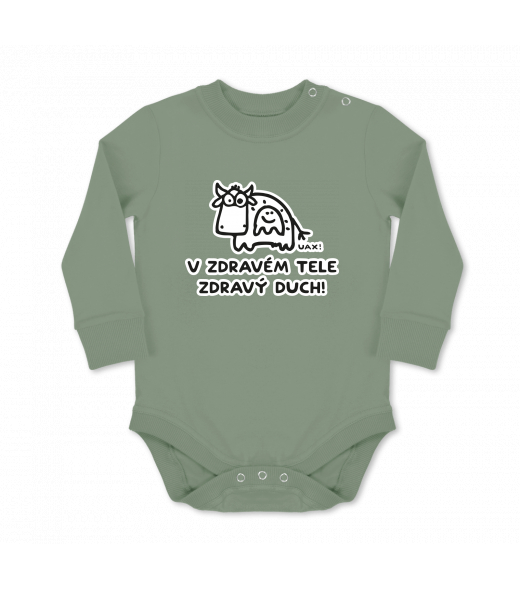 UAX baby body Ski collection for man with design 1309 V ZDRAVÉM TELE ZDRAVÝ DUCH in color OLIVA