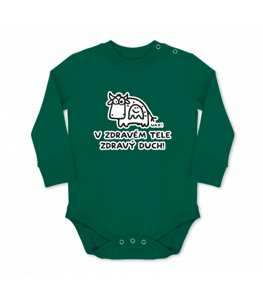 UAX baby body Ski collection for man with design 1309 V ZDRAVÉM TELE ZDRAVÝ DUCH in color UNIVERSITY GREEN