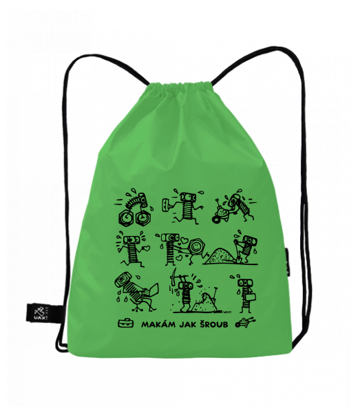 Original gymsack - LEVAK Ski collection for man with design 1343 MAKÁM JAK ŠROUB 2 in color BRIGHT GREEN