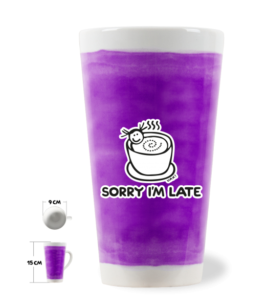 The original LATTE CUP UAX! Ski collection for man with design 1087 SORRY IM LATE in color VIOLET