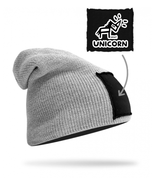 We make sustainable UAX clothing! - hand sewn in the Czech Republic uaxMen uaxSki collectionHats and HeadbandsKNITTED HAT BEANIEdesign 1376 - UNICORNGREY/BLACK