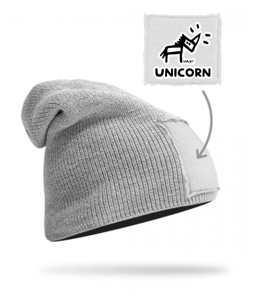 We make sustainable UAX clothing! - hand sewn in the Czech Republic uaxMen uaxSki collectionHats and HeadbandsKNITTED HAT BEANIEdesign 1376 - UNICORNGREY/WHITE