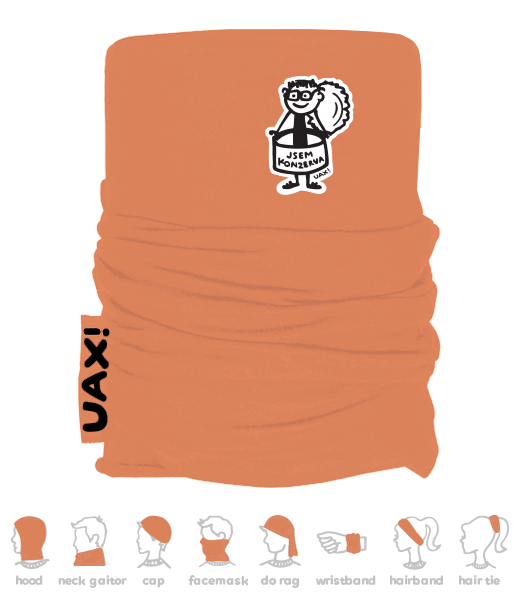 We make sustainable UAX clothing! - hand sewn in the Czech Republic uaxMen uaxSki collectionMultifunctional scarvesMULTIFUNCTION COTTON SCARFdesign 1352 - JSEM KONZERVA MENMANDARIAN ORANGE