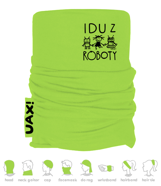We make sustainable UAX clothing! - hand sewn in the Czech Republic uaxMen uaxSki collectionMultifunctional scarvesMULTIFUNCTION COTTON SCARFdesign 1370 - IDU Z ROBOTYPARROT GREEN