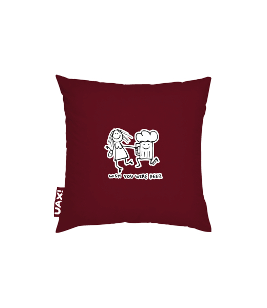 We make sustainable UAX clothing! - hand sewn in the Czech Republic uaxMen uaxSki collectionPillowPILLOW COVER 40x40design 1049 - WISH YOU WERE BEERDARK RED