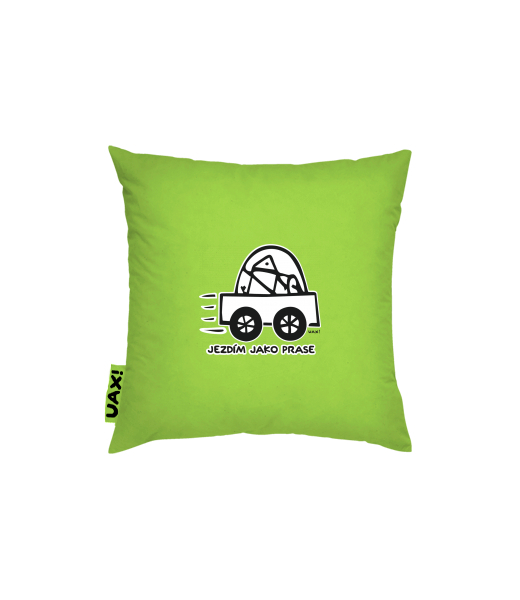 We make sustainable UAX clothing! - hand sewn in the Czech Republic uaxMen uaxSki collectionPillowPILLOW COVER 40x40design 1072 - JEZDÍM JAKO PRASEPARROT GREEN