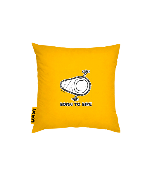 We make sustainable UAX clothing! - hand sewn in the Czech Republic uaxMen uaxSki collectionPillowPILLOW COVER 40x40design 1074 - BORN TO BIKEGOLDEN CREAM