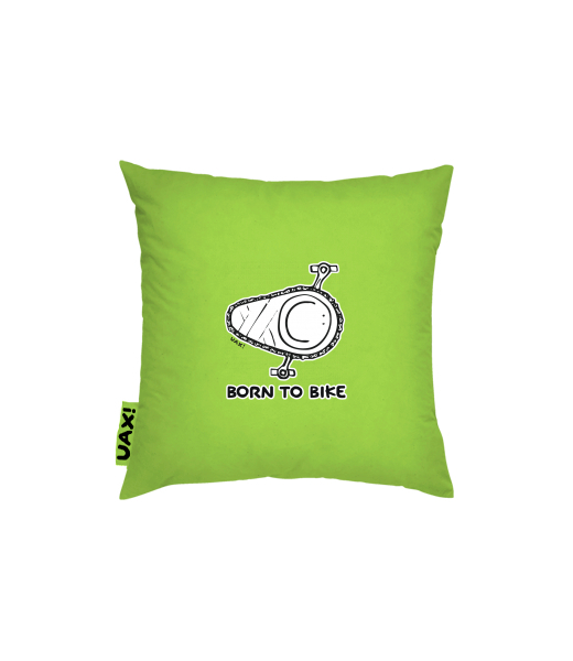We make sustainable UAX clothing! - hand sewn in the Czech Republic uaxMen uaxSki collectionPillowPILLOW COVER 40x40design 1074 - BORN TO BIKEPARROT GREEN