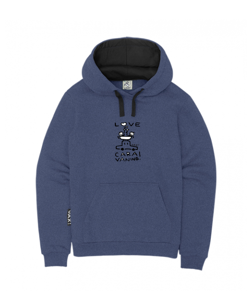 MEN'S INSULATED KANGAROO HOODIE Ski collection for man with design 1026 LOVE CARA VANING in color JEANS