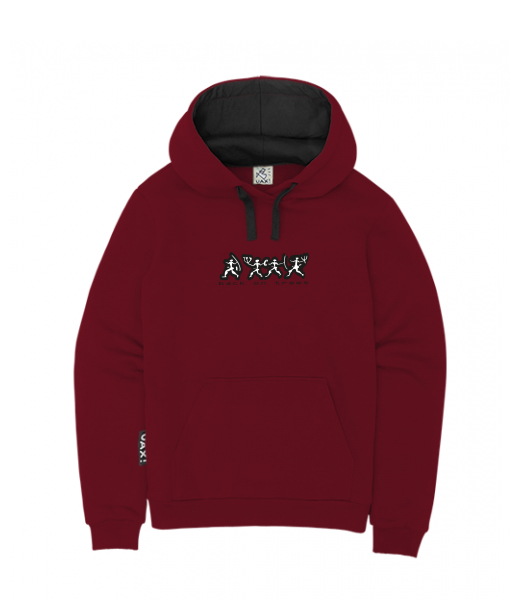 MEN'S INSULATED KANGAROO HOODIE Ski collection for man with design 11 BACK ON TREES in color DARK RED