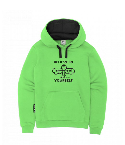 MEN'S INSULATED KANGAROO HOODIE Ski collection for man with design 1228 BELIEVE IN YOURSELF in color APPLE
