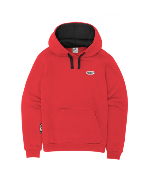 MEN'S INSULATED KANGAROO HOODIE Ski collection for man with design 71 FISHBARCODE in color RED