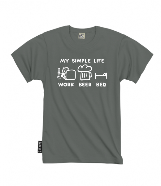 We make sustainable UAX clothing! - hand sewn in the Czech Republic uaxMen uaxSki collectionT-shirtsSKRAT T-SHIRTSdesign 1211 - MY SIMPLE LIFE WORK BEER BEDDARK GRAY