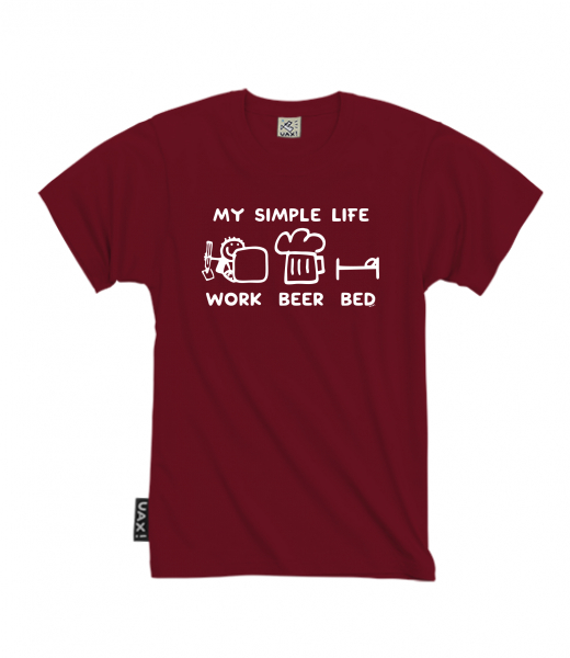 We make sustainable UAX clothing! - hand sewn in the Czech Republic uaxMen uaxSki collectionT-shirtsSKRAT T-SHIRTSdesign 1211 - MY SIMPLE LIFE WORK BEER BEDDARK RED