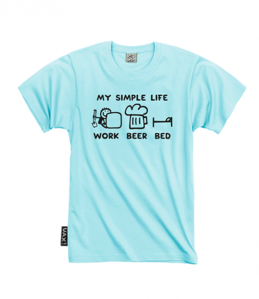 We make sustainable UAX clothing! - hand sewn in the Czech Republic uaxMen uaxSki collectionT-shirtsSKRAT T-SHIRTSdesign 1211 - MY SIMPLE LIFE WORK BEER BEDPASTEL BLUE
