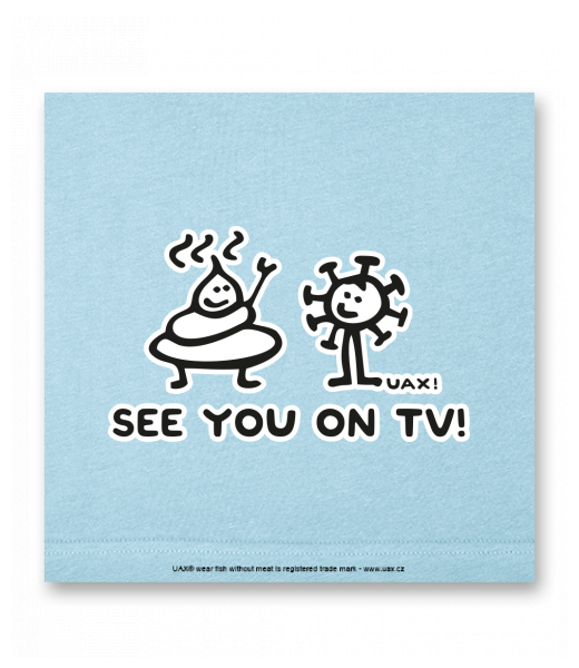 We make sustainable UAX clothing! - hand sewn in the Czech Republic uaxMen uaxSki collectionThe posters on the wallPOSTER UAX! 80x80cmdesign 1306 - SEE YOU ON TVPASTEL BLUE