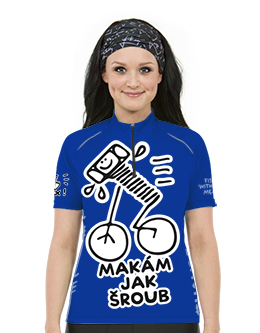 Original women's cycling jersey in several colors with print MAKÁM JAK ŠROUB. Made of special MICRO BORGINI microfibers that ensure maximum perspiration removal from the skin. It is lightweight, comfortable to wear. The cyclodress includes a short 16cm zip and one pocket on the back. The sleeves are loose, with rubber at the bottom hem.