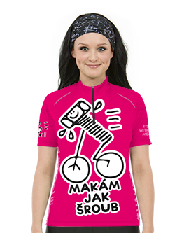 Original women's cycling jersey in several colors with print MAKÁM JAK ŠROUB. Made of special MICRO BORGINI microfibers that ensure maximum perspiration removal from the skin. It is lightweight, comfortable to wear. The cyclodress includes a short 16cm zip and one pocket on the back. The sleeves are loose, with rubber at the bottom hem.