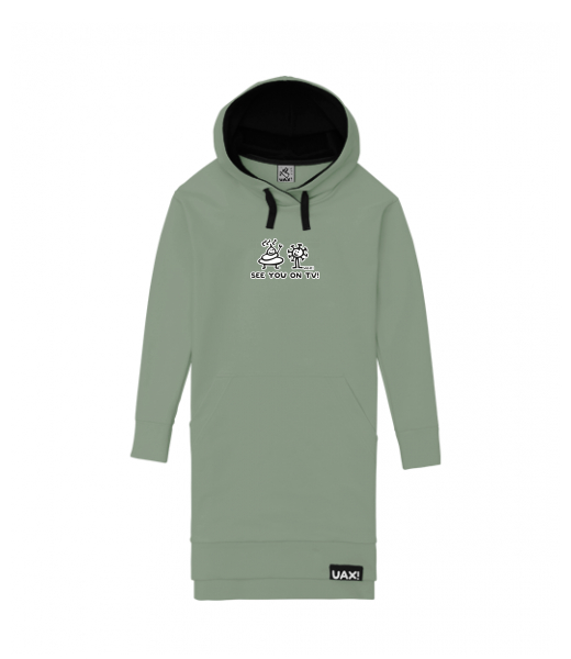 LADIES SWEATSHIRT DRESS LONG for woman with design 1306 SEE YOU ON TV in color OLIVA