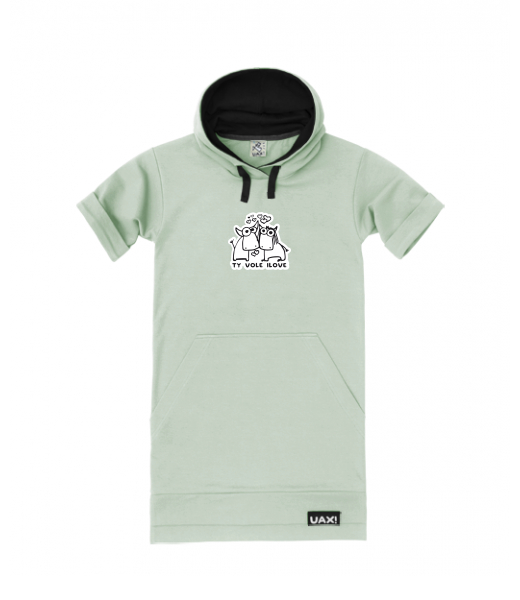 LADIES SWEATSHIRT DRESS SHORT for woman with design 1089 TY VOLE I LOVE in color PISTACHIO