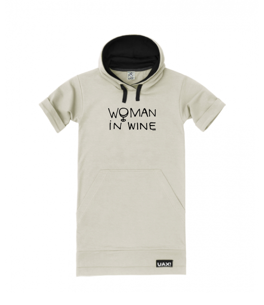 LADIES SWEATSHIRT DRESS SHORT for woman with design 1346 WOMAN IN WINE 1 in color IVORY