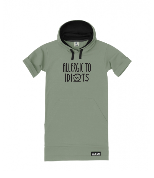 LADIES SWEATSHIRT DRESS SHORT for woman with design 1354 ALLERGIC TO IDIOTS in color OLIVA