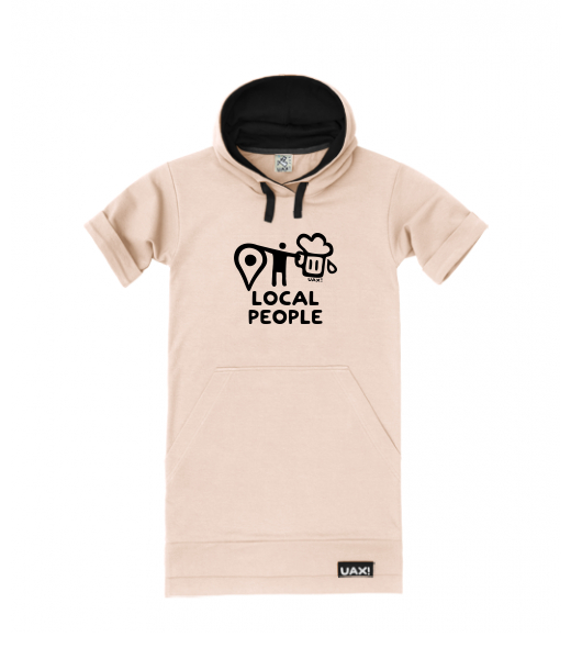 LADIES SWEATSHIRT DRESS SHORT for woman with design 1360 LOCAL PEOPLE BIG in color CAPPUCINO