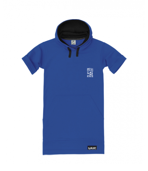 LADIES SWEATSHIRT DRESS SHORT made of thin breathable tracksuit made of elastic material. Sweatshirt dress with short folded sleeves, over the head with a hood. The hood is stitched with an inner black knit insert. The dress has black laces and spacious pockets on the front. We also sew in oversized sizes 3XL and 4XL. In addition, ladies will appreciate the larger opening over the head, thanks to which the dress can be changed comfortably and will not spoil the hairstyle or make-up.