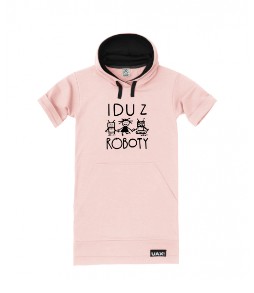 LADIES SWEATSHIRT DRESS SHORT for woman with design 1370 IDU Z ROBOTY in color OLD PINK