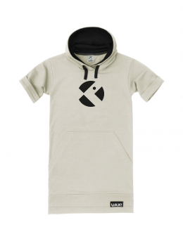LADIES SWEATSHIRT DRESS SHORT made of thin breathable tracksuit made of elastic material. Sweatshirt dress with short folded sleeves, over the head with a hood. The hood is stitched with an inner black knit insert. The dress has black laces and spacious pockets on the front. We also sew in oversized sizes 3XL and 4XL. In addition, ladies will appreciate the larger opening over the head, thanks to which the dress can be changed comfortably and will not spoil the hairstyle or make-up.