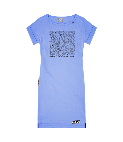 If you're looking for a comfortable women's dress that fits every figure, you've come to the right place. BASIC dresses are picked out to the smallest detail. They have a straight looser cut also in the upper part, so you don't have to worry about sweating in them in the summer. A soft cotton trim is sewn around the neck, decorated with a small woven UAX label. The Folded sleeves on the dress are also looser in the armpits. The dress has deep pockets sewn on both sides, which can reliably fit small items or a larger smartphone. The back part of the dress is extended, the front part is shorter. The dress has slits on the sides and a printed UAX cotton label sewn on the front. Any print can be printed on the dress. Please refer to the size charts when estimating sizes. We sew these CUSTOM dresses only after the order is created, just in time, tailored to you. Choose from 34 color combinations and more than 400 prints.