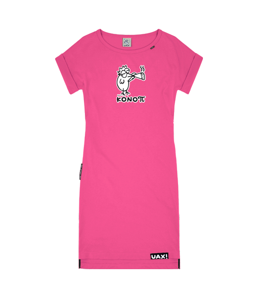 If you're looking for a comfortable women's dress that fits every figure, you've come to the right place. BASIC dresses are picked out to the smallest detail. They have a straight looser cut also in the upper part, so you don't have to worry about sweating in them in the summer. A soft cotton trim is sewn around the neck, decorated with a small woven UAX label. The Folded sleeves on the dress are also looser in the armpits. The dress has deep pockets sewn on both sides, which can reliably fit small items or a larger smartphone. The back part of the dress is extended, the front part is shorter. The dress has slits on the sides and a printed UAX cotton label sewn on the front. Any print can be printed on the dress. Please refer to the size charts when estimating sizes. We sew these CUSTOM dresses only after the order is created, just in time, tailored to you. Choose from 34 color combinations and more than 400 prints.