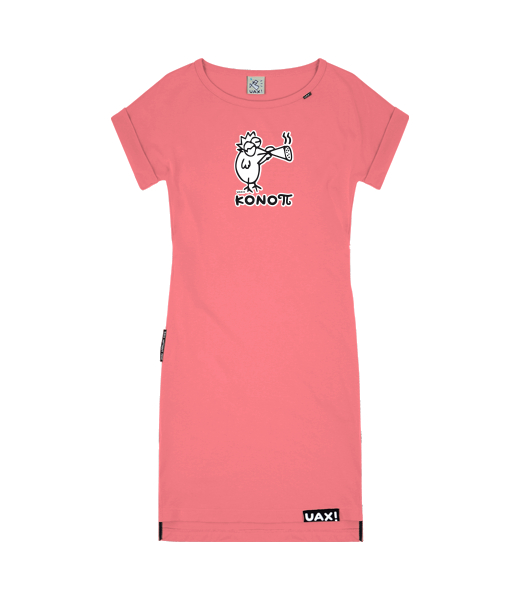 If you're looking for a comfortable women's dress that fits every figure, you've come to the right place. BASIC dresses are picked out to the smallest detail. They have a straight looser cut also in the upper part, so you don't have to worry about sweating in them in the summer. A soft cotton trim is sewn around the neck, decorated with a small woven UAX label. The Folded sleeves on the dress are also looser in the armpits. The dress has deep pockets sewn on both sides, which can reliably fit small items or a larger smartphone. The back part of the dress is extended, the front part is shorter. The dress has slits on the sides and a printed UAX cotton label sewn on the front. Any print can be printed on the dress. Please refer to the size charts when estimating sizes. We sew these CUSTOM dresses only after the order is created, just in time, tailored to you. Choose from 34 color combinations and more than 400 prints.