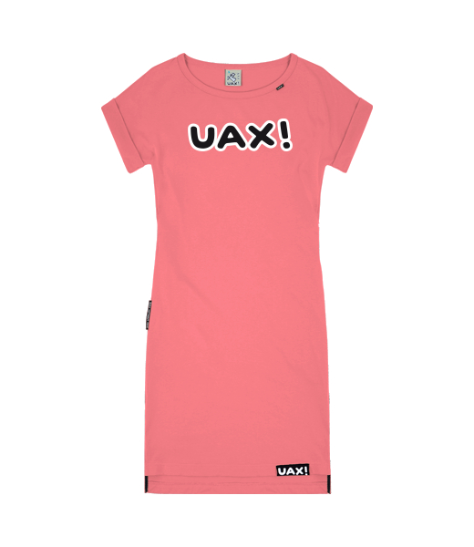 If you're looking for a comfortable women's dress that fits every figure, you've come to the right place. BASIC dresses are picked out to the smallest detail. They have a straight looser cut also in the upper part, so you don't have to worry about sweating in them in the summer. A soft cotton trim is sewn around the neck, decorated with a small woven UAX label. The Folded sleeves on the dress are also looser in the armpits. The dress has deep pockets sewn on both sides, which can reliably fit small items or a larger smartphone. The back part of the dress is extended, the front part is shorter. The dress has slits on the sides and a printed UAX cotton label sewn on the front. Any print can be printed on the dress. Please refer to the size charts when estimating sizes. We sew these CUSTOM dresses only after the order is created, just in time, tailored to you. Choose from 34 color combinations and more than 400 prints.