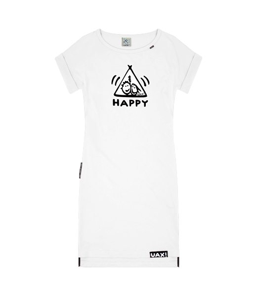 Women's dress BASIC with prints for woman with design 1113 HAPPY in color WHITE