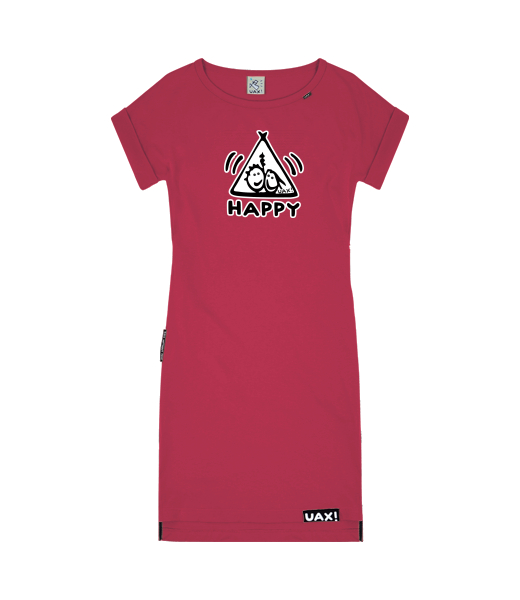 Women's dress BASIC with prints for woman with design 1113 HAPPY in color CHILLY PEPPER RED