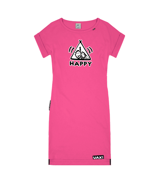 If you're looking for a comfortable women's dress that fits every figure, you've come to the right place. BASIC dresses are picked out to the smallest detail. They have a straight looser cut also in the upper part, so you don't have to worry about sweating in them in the summer. A soft cotton trim is sewn around the neck, decorated with a small woven UAX label. The Folded sleeves on the dress are also looser in the armpits. The dress has deep pockets sewn on both sides, which can reliably fit small items or a larger smartphone. The back part of the dress is extended, the front part is shorter. The dress has slits on the sides and a printed UAX cotton label sewn on the front. Any print can be printed on the dress. Please refer to the size charts when estimating sizes. We sew these CUSTOM dresses only after the order is created, just in time, tailored to you. Choose from 34 color combinations and more than 400 prints.