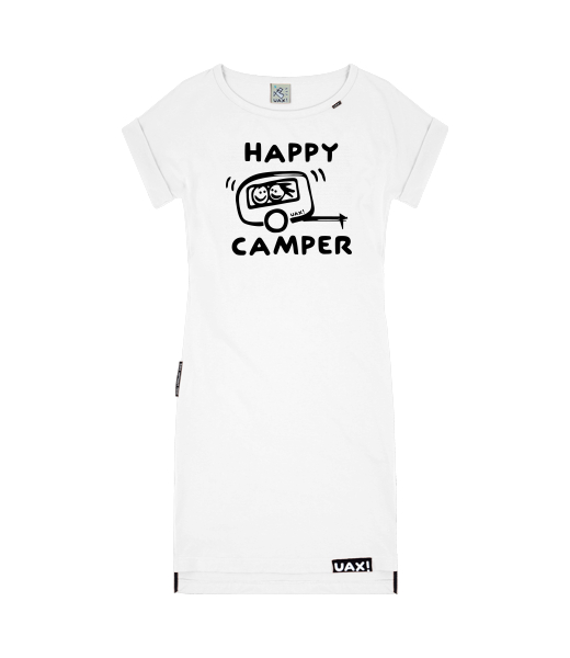 Women's dress BASIC with prints for woman with design 1116 HAPPY CAMPER in color WHITE