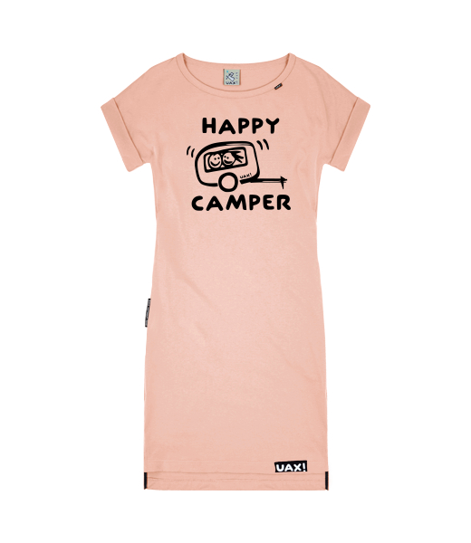 Women's dress BASIC with prints for woman with design 1116 HAPPY CAMPER in color PEACH